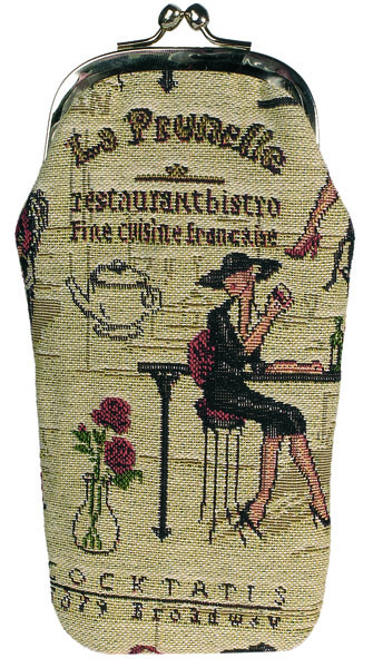 Etui lunettes en Tapisserie « Cocktail Girl » représentant les Élégantes au Bistro sur fond jaune paille