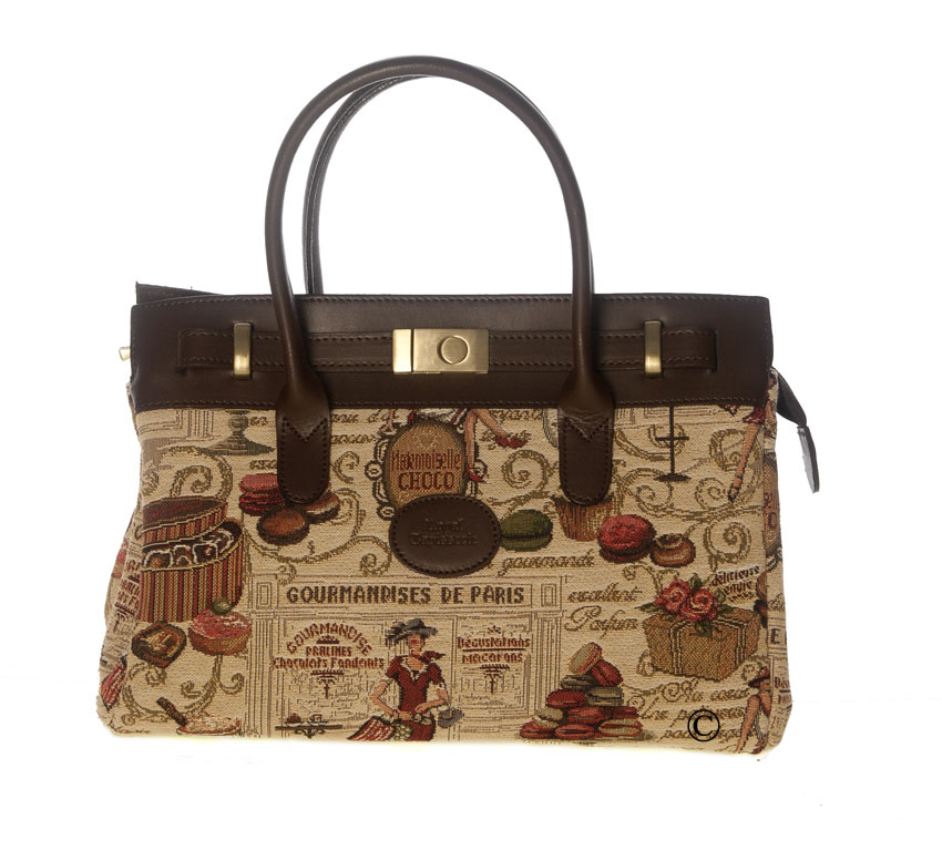 Sac en Tapisserie “Gourmandes” représentant les macarons sur fond jaune paille